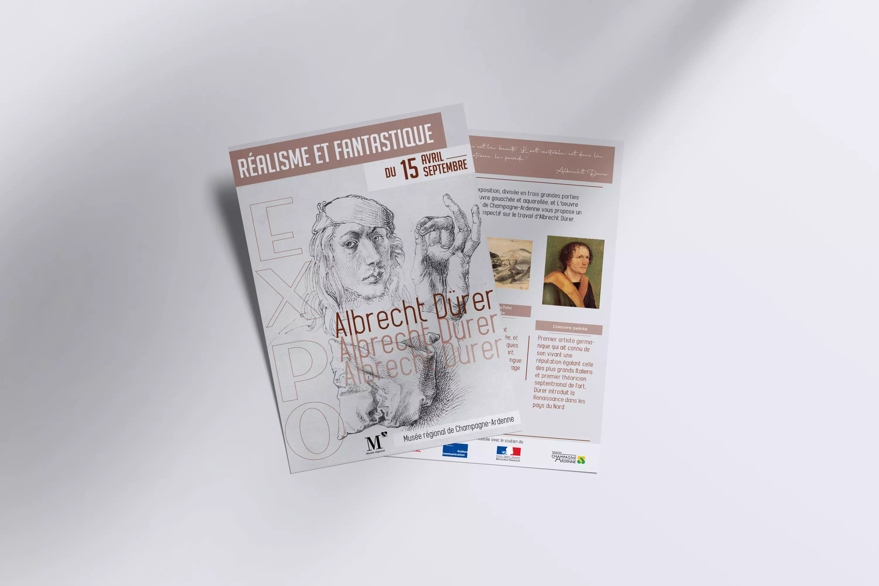 Réaliser un carton format A5 recto verso pour le musée régional de Champagne-Ardenne. Ce carton sera destiné à la présentation d'une exposition du célèbre peintre et graveur Albrecht Dürer. Cette réalisation demande quelques contraintes. Intégrer des textes, des images d'oeuvre de l'artiste, le logotype du musée ainsi que les logos partenaires et sponsors de l'exposition.